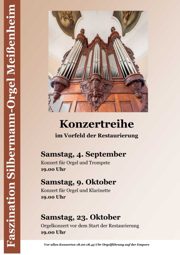 Wer sich nun den 14.09.2025 schon fest in den Kalender eingetragen hatte, der muss nicht gänzlich auf Silbermann verzichten: Morgens wird Dekan Rainer Becker den Gottesdienst in Meißenheim halten und nachmittags um 17.00 Uhr wird es eine „Baustellenführung“ auf der Orgelempore geben, bei der über den Stand der Arbeiten informiert wird und die Gelegenheit besteht, „hinter die Kulissen“ des Orgelgehäuses zu schauen.