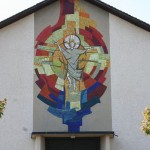 Der Name unserer Kirche wird ins Bild gesetzt durch das Mosaik, das über dem Eingangsbereich zu sehen ist: „Auferstehung Jesu Christi“