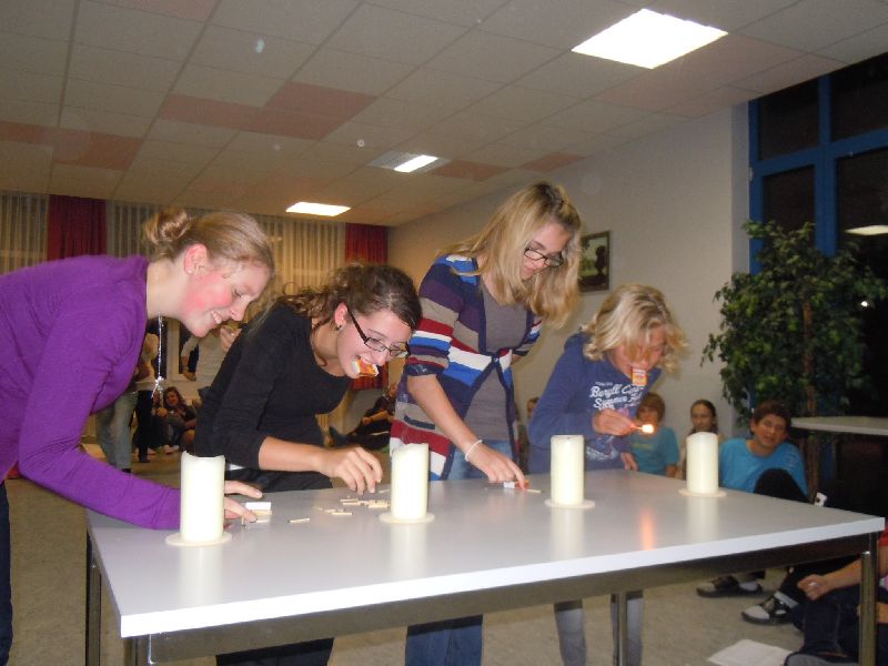 Von Freitag 28.10. bis Montag 31.10. waren die Konfirmandinnen und Konfirmanden auf ihrer Freizeit in der Jugendherberge Kehl. Mit vielen Spielen und Aktionen erarbeiteten sich die Jugendlichen das Thema Abendmahl und Gemeinschaft. Höhepunkt war die Abendmahlsfeier am Sonntagabend.