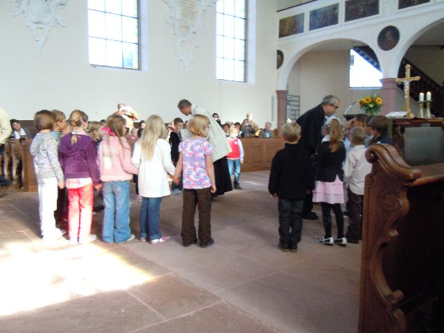„Was aus mir noch einmal werden wird?“ So lautete das Motto des Einschulungsgottesdienstes. Viele Erstklässler waren mit ihren Eltern, Großeltern und Paten in die Meißenheimer Kirche gekommen. Pfr. Adler erzählte die Geschichte von einer Raupe, deren Frage „Was aus mir noch einmal werden wird?“ darin gipfelte, dass aus der Raupe ein wunderschöner Schmetterling wurde. In jedem Kind stecke – wie in der Raupe – ein wundervolles Geheimnis, das einmal zutage treten werde.