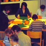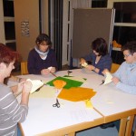 Eine große Anzahl Eltern traf sich am Freitag, 9.11. zum Basteln für den Weihnachtsmarkt. Fleißige Hände produzierten Heusterne, Meisenknödel-Vögel und Kerzenhalter aus Ölpapier. Hier ein paar Eindrücke: