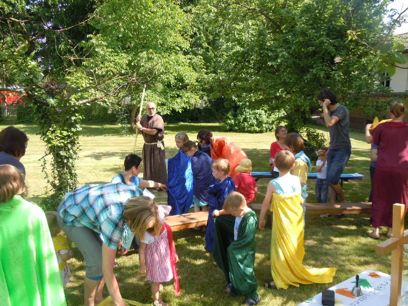 Am Samstag 8. Juni bereits um 16.00 Uhr fand der Krabbelgottesdienst statt. Die Geschichte, um die es ging, war die Flucht des Volkes Israel aus Ägypten unter Führung des Mose.