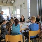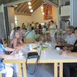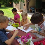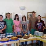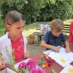 Bei schönstem Wetter fand am Sonntag nach dem Gottesdienst wieder einmal ein Kirchkaffee statt. Dieses mal verbunden mit einem Kuchenverkauf und einem kleinen Flohmarkt. Der Erlös von Kaffee und Kuchen kommt den Teamern im Konfirmandenunterricht zugute. Schnell war der Kuchen weg und viele Gottesdienstteilnehmer freuten sich über eine Tasse Kaffee und anregende Gespräche. Zur gleichen Zeit fand im Pfarrgarten der Kindergottesdienst statt. Mit Blütenblättern wurden Bilder gemalt. Zu sehen sind die Bilder am kommenden Sonntag beim Familiengottesdienst.