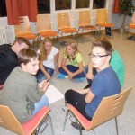 Eine spannende Zeit erlebten unsere Konfirmandinnen und Konfirmanden auf ihrer Freizeit in der Jugendherberge Kehl. Abendmahl und Gemeinschaft waren das Thema, das sowohl theoretisch als auch mit praktischen Übungen behandelt wurde. Höhepunkt war sicher der gemeinsam vorbereitete Abendmahlsgottesdienst. Ab nun sind die Konfirmandinnen und Konfirmanden eingeladen, an den Abendmahlsfeiern der Gemeinde teilzunehmen. Welche besondere Form der Gemeinschaft dabei entsteht, darüber wurde diskutiert und mit verschiedenen Aktionen wurde die Notwendigkeit von Gemeinschaft erfahrbar gemacht.