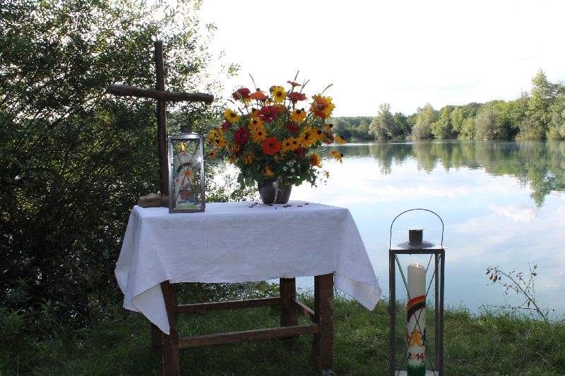 Einen besonderen Taufort hat sich Familie Bayer/Reichenbach für ihre Tochter Anna ausgewählt. Wie schon für die Tochter Marla fand die Taufe am Matschelsee in Kürzell statt. Den vielen Schnacken trotzend fand man ein lauschiges Plätzchen, an dem die Taufe stattfinden konnte. Eltern, Paten und Großeltern beteiligten sich mit verschiedenen Beiträgen an dem Taufgottesdienst.