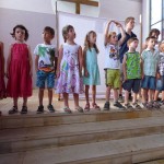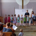 Am 23. Juli feierten die Schulanfänger des Kindergartens Kürzell ihren Gottesdienst. Mit Stabfiguren wurde die Entwicklungsgeschichte von der Raupe zum Schmetterling erzählt.
