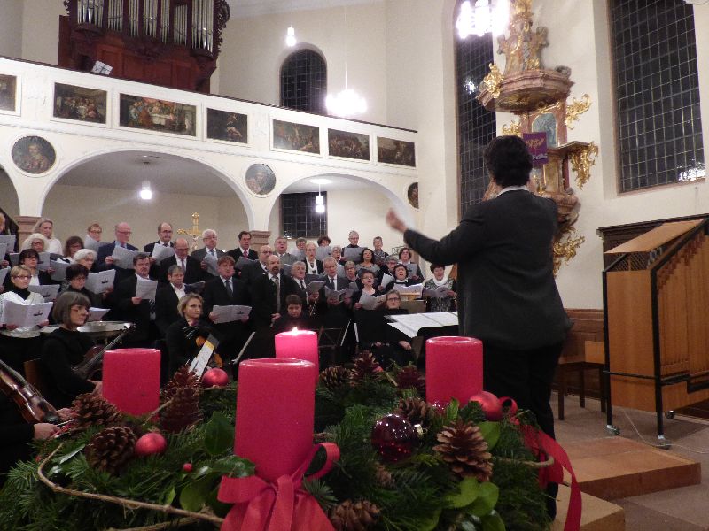 Schon eine kleine Tradition ist das Adventskonzert des Kirchenchores. Auch dieses Jahr waren wieder Projektsängerinnen und Sänger mit dabei, ein kleines Ensemble von Instrumentalisten und Frank Spengler an der Orgel. „Wie soll ich dich empfangen?“ unter diesem Motto stand die Adventsmusik und zu hören war denn auch diese Kantate von Buxtehude, aber auch andere Chorsätze z. B. von Mozart und die Arie „Er weidet meine Herde“ von Händel. Beim letztgenannten Stück war auch Marion Matter als Solistin zu hören.