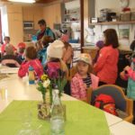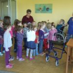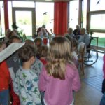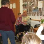Schließlich waren alle Senioren soweit gerichtet, dass die Kinder zum Singen antreten konnten. Mit großer gegenseitiger Freude wurde gesungen und geklatscht. Die Frühlingslieder passten gut zu dem strahlenden Sonnentag. Schon im Herbst und Winter waren verschiedene Kindergruppen mit Herbst- und Laternenliedern zu Besuch gewesen, nun steht noch ein Besuch mit Sommerliedern an.