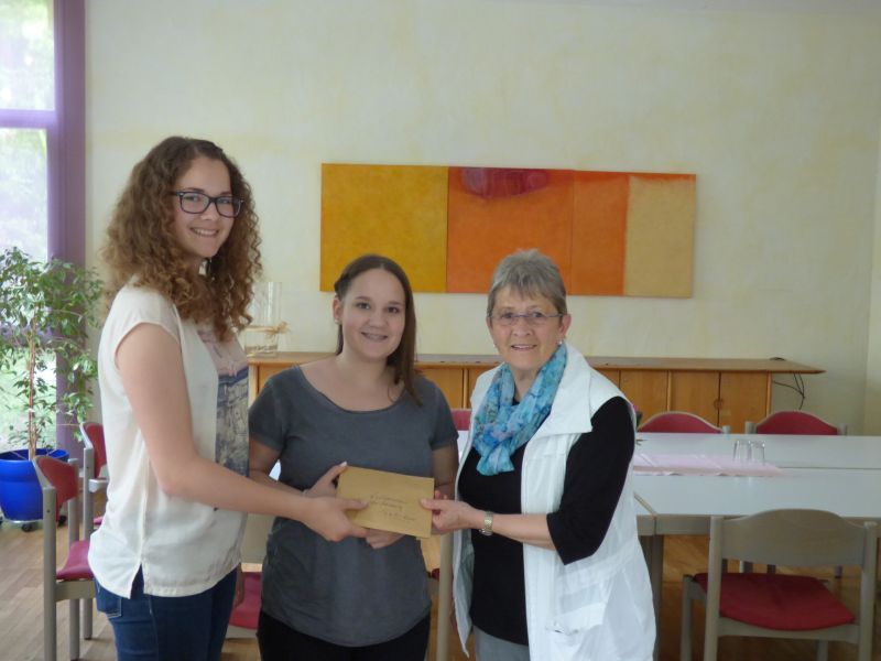 Lena und Ronja waren mit nach Freiburg gefahren, um dort im Elternhaus des „Fördervereins für krebskranke Kinder e.V.“ das Konfirmandendankopfer zu überbringen.