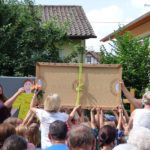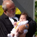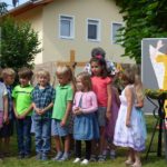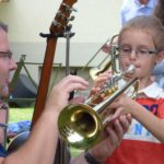 Eine schöne Tradition ist der Familiengottesdienst im Pfarrgarten bevor die Sommerferien beginnen. Die Schulanfängerkinder des Kindergartens in Meißenheim sangen das Lied: „Mögen Engel dich begleiten“. Jedes Kind hatte ein eigenes Engelbild gemalt und auf zwei großen Engeln durften alle Gottesdienstteilnehmenden ihren Namen schreiben. Sehr aufmerksam verfolgten die Kinder die Taufe von Hanna. In diesem Gottesdienst wurden auch die neuen Konfirmandinnen und Konfirmanden vorgestellt. Nach dem Gottesdienst, der vom Posaunenchor mitgestaltet wurde, durften die Instrumente ausprobiert werden.