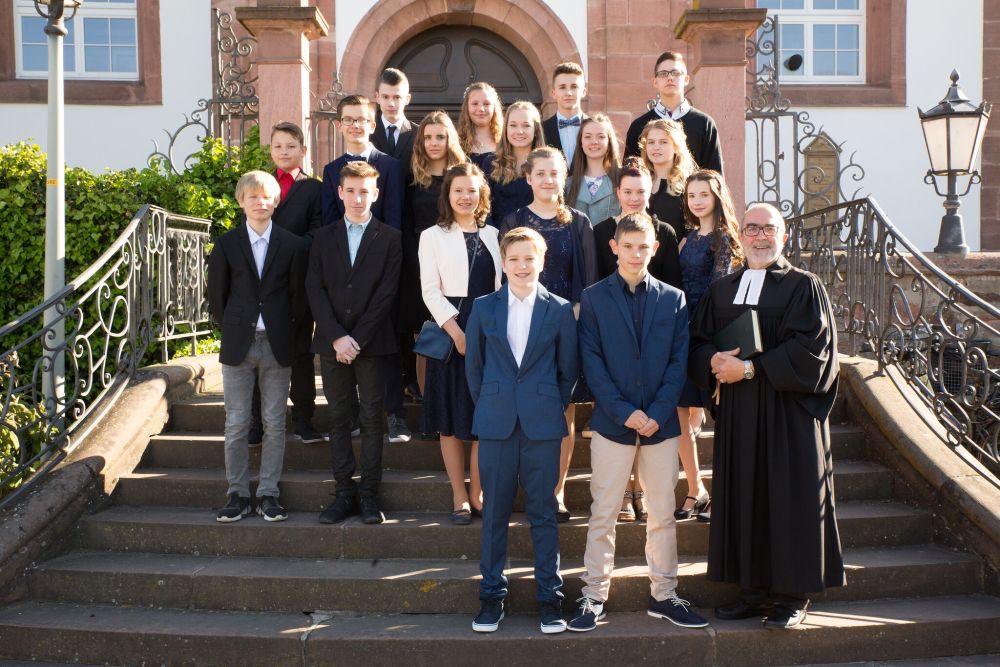 Auf dem Konfirmandenbild sind auch die Kürzeller Konfirmanden, die erst am 7. Mai in Kürzell konfirmiert werden.