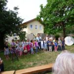 Schon eine richtige Tradition ist der Gottesdienst im Pfarrgarten am letzten Sonntag vor den großen Ferien. Mitgewirkt haben wieder die Schulanfängerkinder des Kindergartens und es gab zwei Taufen und die Vorstellung der neuen Konfirmandinnen und Konfirmanden.
