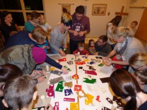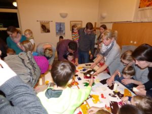 Die Kinderkirche im Advent – ehemals Krabbelgottesdienst – hatte als Thema: Tragt in die Welt nun ein Licht. Anton, die Handpuppe, erzählte den Kindern vom Licht und davon, dass auch wir Menschen Licht sein können für andere Menschen. Als Aktion durfte sich jedes Kind eine eigene Kerze gestalten und so das Licht, als brennende Kerze, hinaustragen in die Welt.