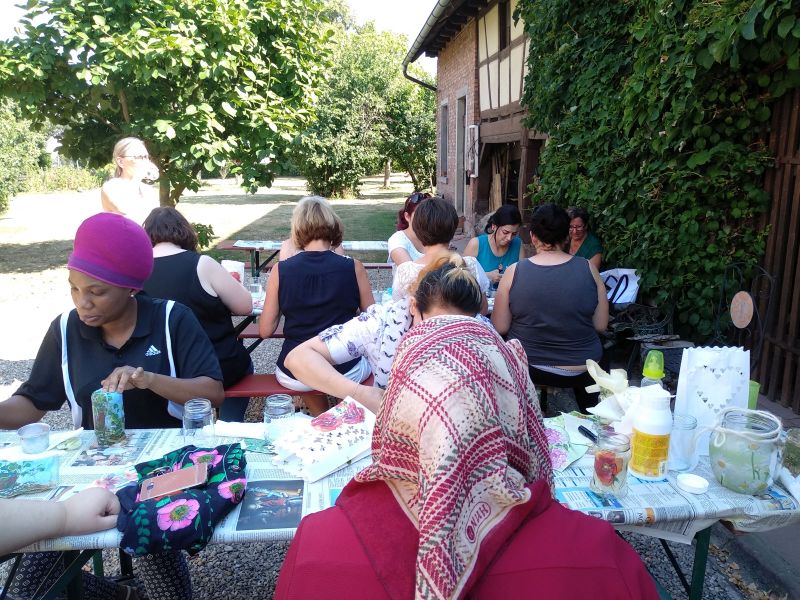 Zum 4. Mal fand das Treffen „Miteinander in Kontakt kommen durch kreatives Gestalten“ für Frauen mit und ohne Migrationshintergrund statt. Trotz der Hitze trafen sich 15 Frauen im Pfarrhof und gestalten mit Serviettentechnik Lichtertüten und Gläser. Es hat wie immer viel Spaß gemacht und die Frauen freuen sich schon auf den nächsten Termin am 31. August. (Doris Adler)
