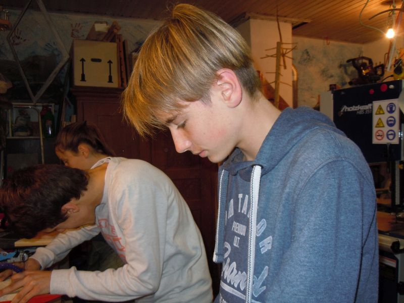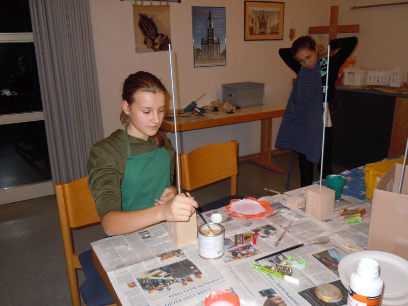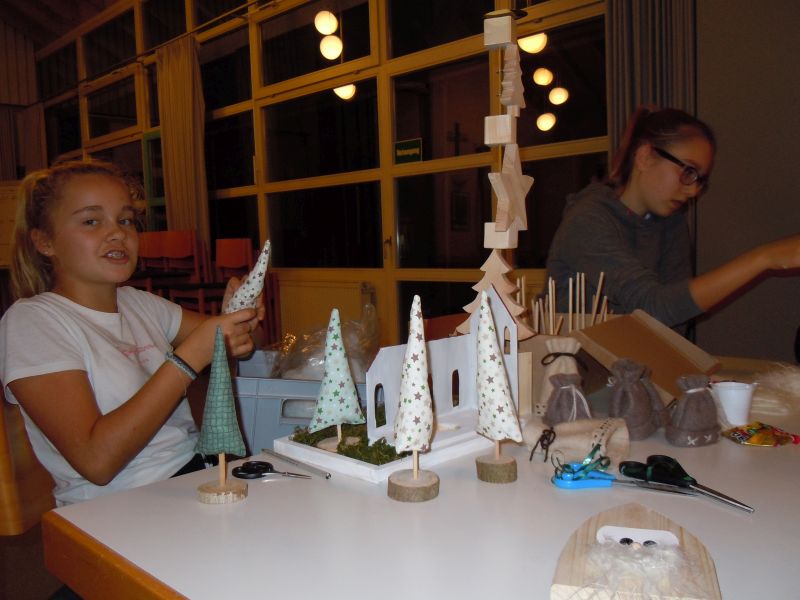 Schon heftig zur Sache geht es für die Konfirmandinnen und Konfirmanden, wenn sie für den Meißenheimer Weihnachtsmarkt am Samstag, 24.11. werkeln.