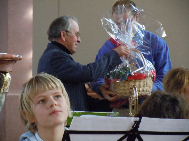 Dem Dank schloß sich auch Pfarrer Adler an, der besonders betonte, dass Georg Roth nicht nur für den Posaunenchor da ist, sondern für alle Gruppen. Denn ihm haben sie es zu verdanken, wenn im Gemeindehaus geheizt ist. Günter Wäldin wurde auch gedankt für sein intensives Arbeiten mit den Jungbläsern; diese wirkten auch im Gottesdienst mit.