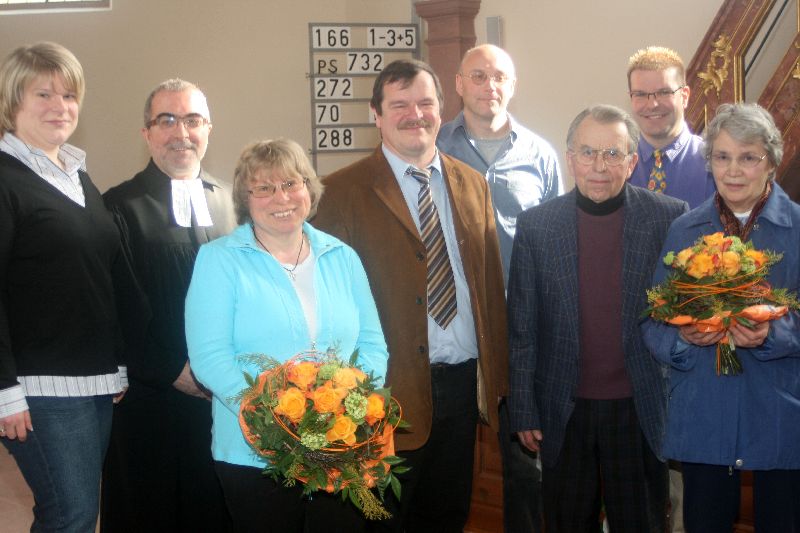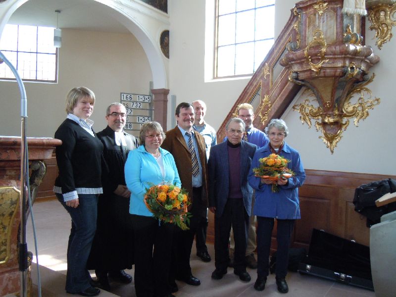 - v.l. Sandra Nückles, Pfarrer Adler, Frau Wäldin, Günter Wäldin, Frieder Gäßler, Georg Roth, Markus Reith, Frau Roth