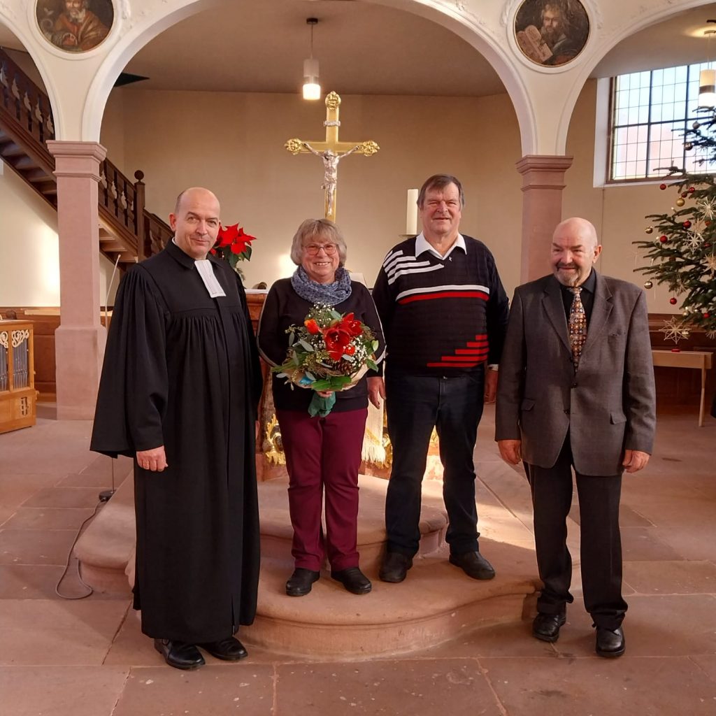Im Rahmen des Gottesdienstes am ersten Weihnachtsfeiertag wurde Günter Wäldin nach über 47 Jahren als Chorleiter des Posaunenchores Meißenheim feierlich verabschiedet. Dekan Rainer Becker würdigte das außergewöhnliche Engagement und der Vorsitzende des Kirchengemeinderats, Heinz Reith, sprach ihm im Namen der Kirchengemeinde großen Dank und hohe Anerkennung aus.