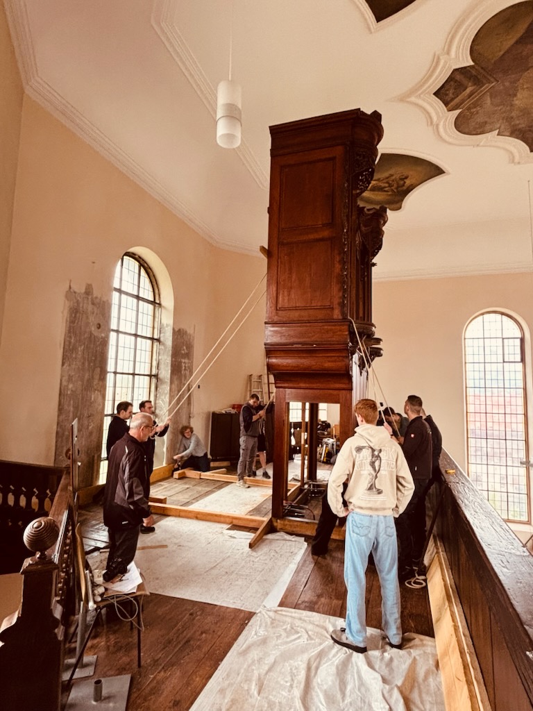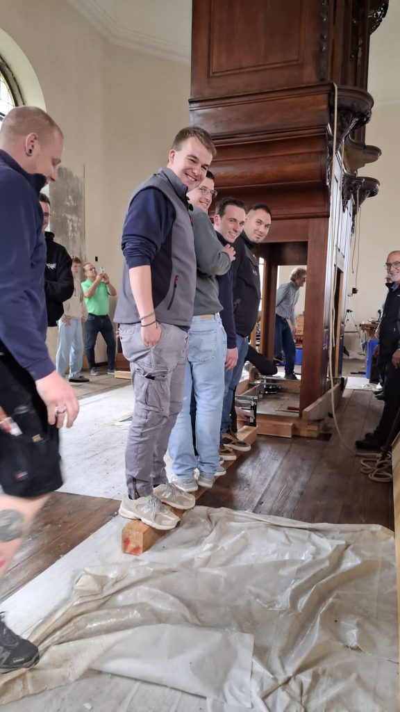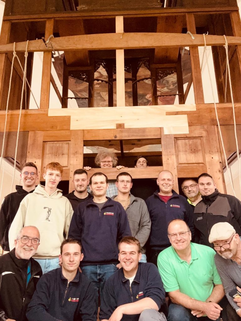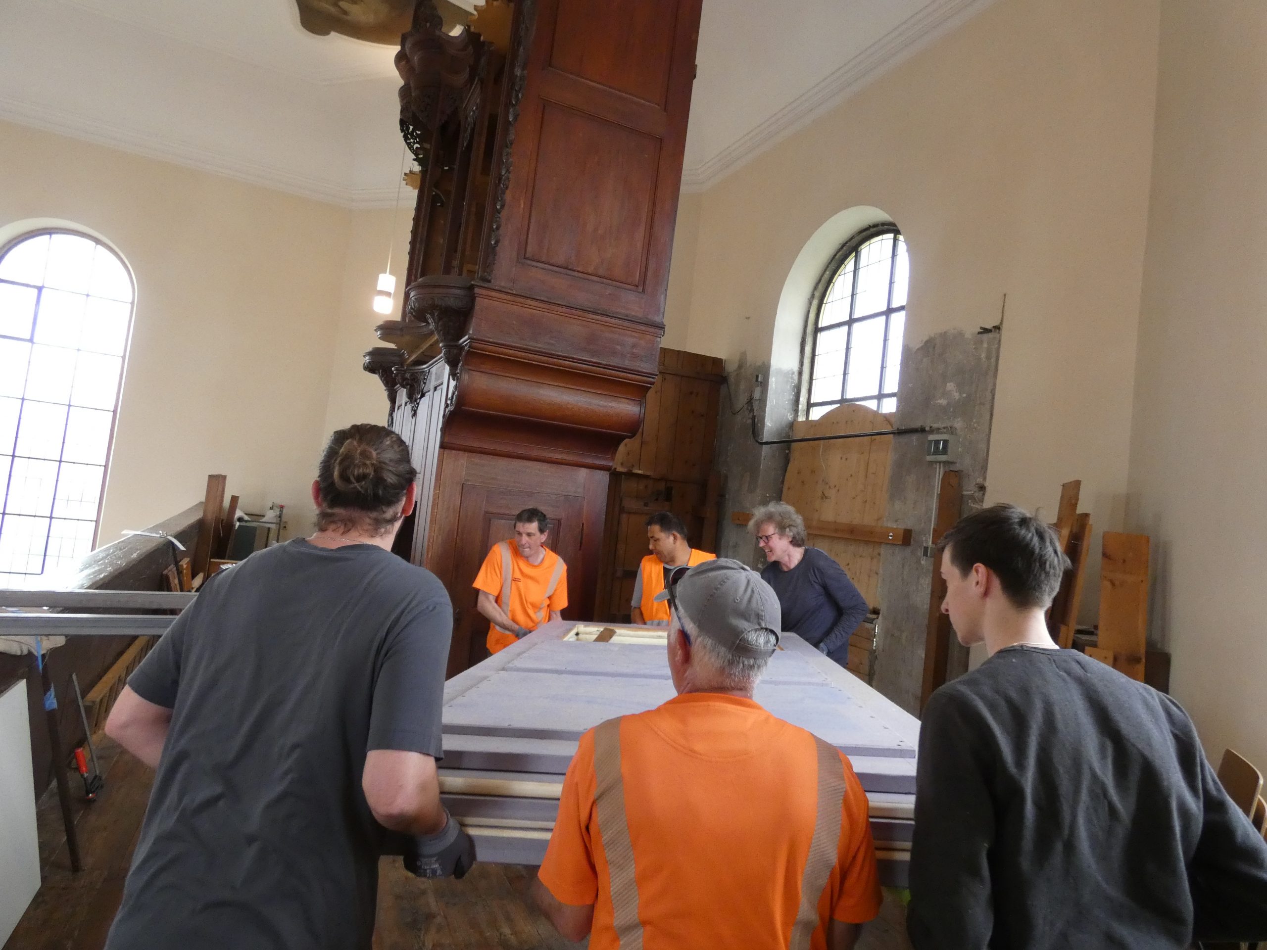 Nach einer knappen Stunde war es geschafft und das Gehäuse sicher nach vorne gerückt. Der gesamten Mannschaft, die dabei war gilt der herzliche Dank der Kirchengemeinde für die Unterstützung – sicherlich werden sich alle noch lange an diesen historischen Moment erinnern.